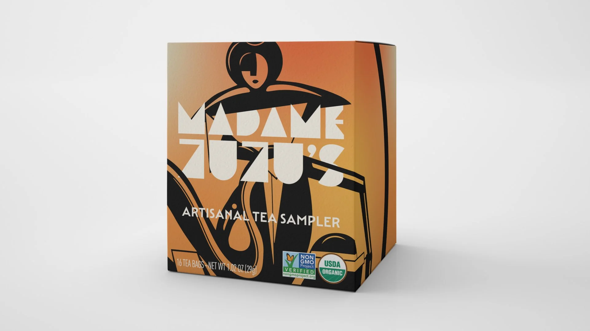 Chloe Mendel and her husband Billy Corgan own and operate Madame Zuzu’s, a lovely tea shop / gift emporium in Highland Park Illinois. They hired us to explore some new packaging ideas for an artisanal selection of teas in their trademark deco-goth style.